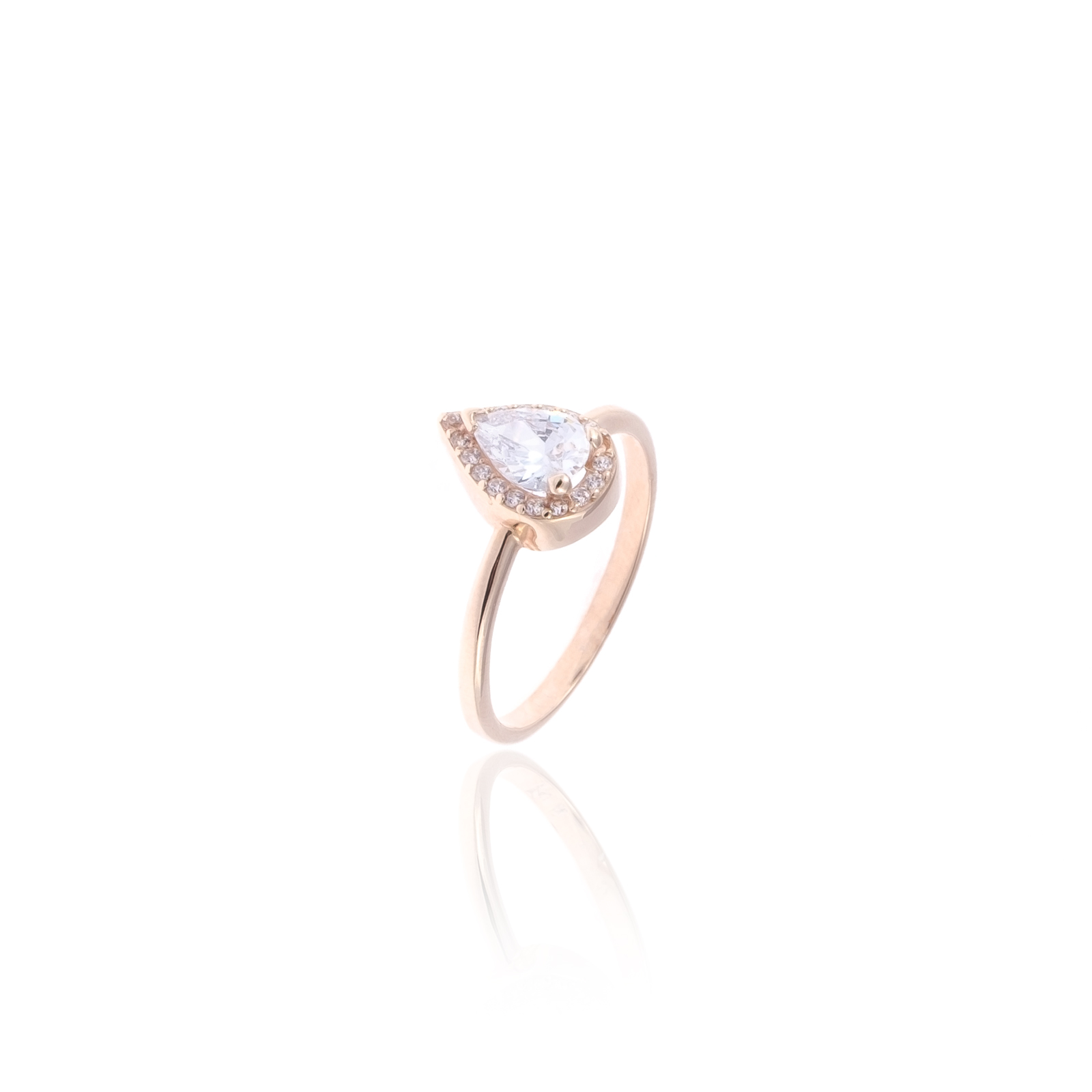 Γυναικείο δαχτυλίδι από κίτρινο χρυσό 14 καρατίων,με υπέροχη ροζέτα σε σχήμα δάκρυ, στολισμένη από λευκές πέτρες ζιργκόν.Ένα ιδιαίτερο κόσμημα που θα εντυπωσιάσει όλους.