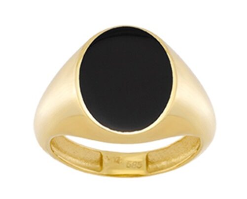 Ανδρικό δαχτυλίδι από κίτρινο χρυσό 14 καρατίων σε λουστρέ φινίρισμα, διακοσμημένο με μαύρο σμάλτο σε οβάλ σχήμα. Ένα εντυπωσιακό δώρο για τον σύντροφό σας!