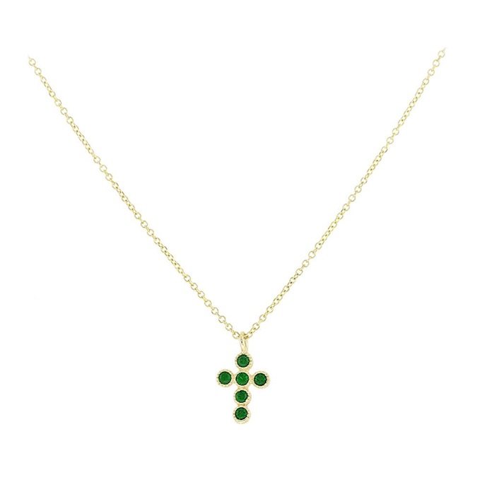 Χρυσό κολιέ 14 καράτια με σταυρό διακοσμημένο με πράσινα ζιργκόν.