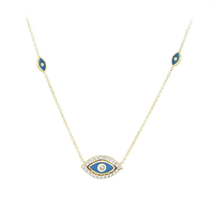 Κολιέ χρυσό 14K με πετράτο μάτι και σμάλτο