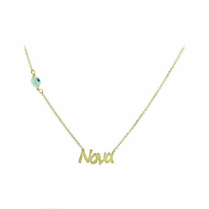 Κολιέ χρυσό 14 καράτια με την λέξη Νονά στο κέντρο του κολιέ και ένα μικρό μάτι φίλντισι.Ένα μοναδικό δώρο για την νονά του παιδιού σας.
