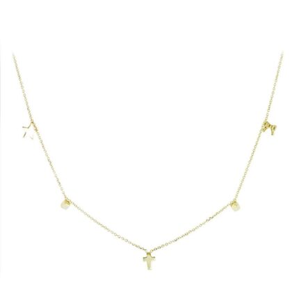 Παιδική παραμάνα από κίτρινο χρυσό 9 καρατίων, στολισμένη με σταυρουδάκι,πέταλο και ένα ματάκι.Ένα διαχρονικό δώρο για νεογέννητο μωράκι ή για βάπτιση.