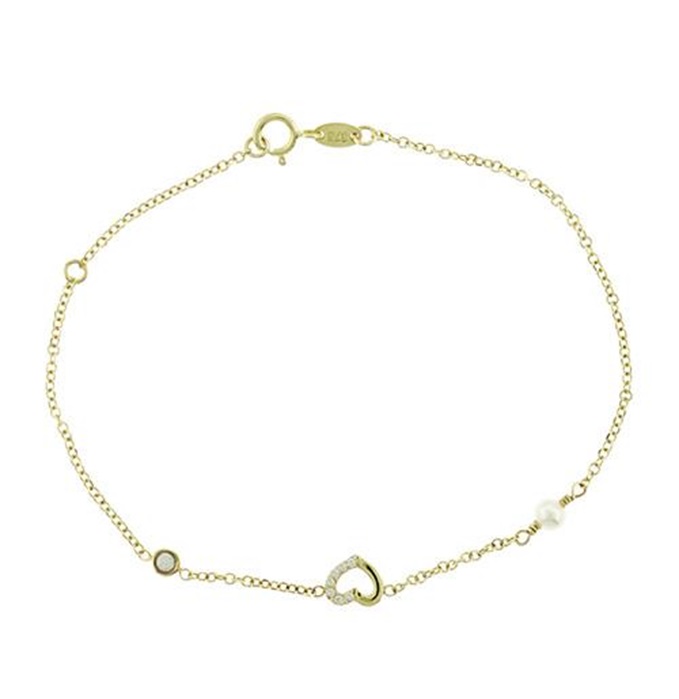 Βραχιόλι χρυσό 14K με καρδία,μαργαριτάρι και ζιργκόν
